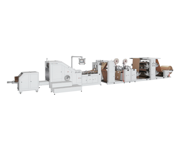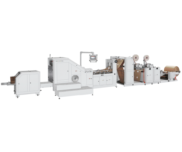 Esta máquina está diseñada para fabricar bolsas de papel de fondo cuadrado con asa retorcida a partir de rollos de papel...